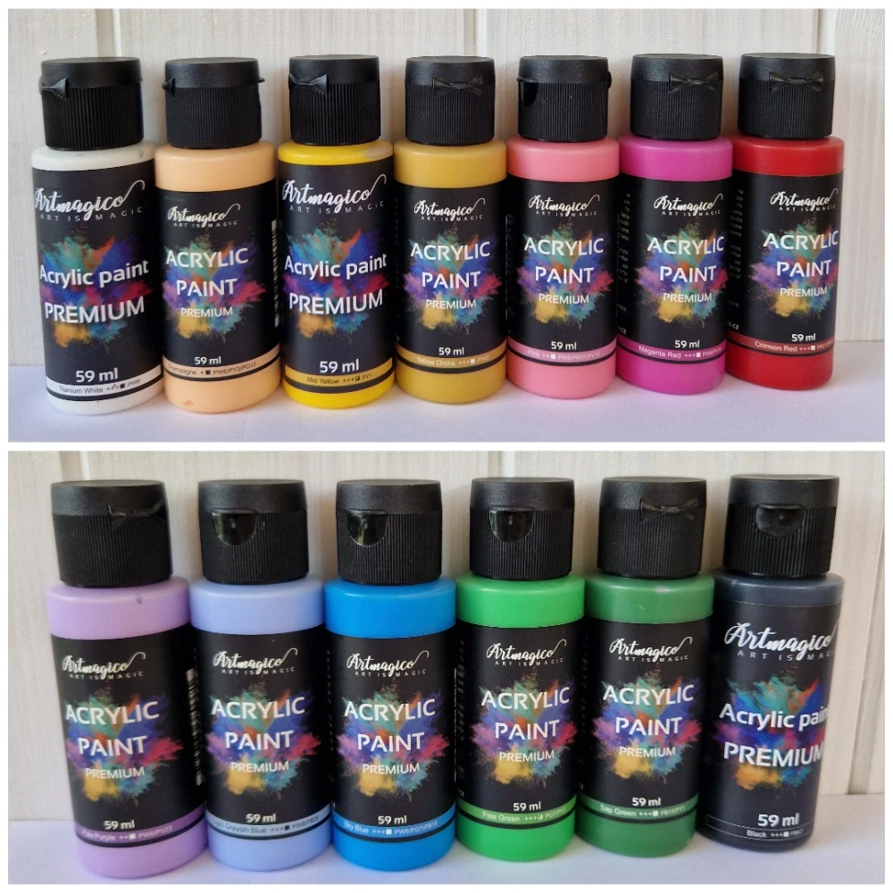 Akrylové barvy Artmagico jsou určené k umělecké tvorbě. Barvy jsou založené na vodní bázi a vynikají vysokým obsahem pigmentu, který zaručuje jejich perfektní krycí vlastnosti i na tmavém povrchu. Akrylové barvy jsou skvělé pro práci na každém povrchu - od dřeva, plastu, plátna, kartonu až po koženku nebo látku. Barvy jsou vodou ředitelné a po zaschnutí se stávají voděodolné. Barvy Vás okouzlí lesklými, zářivými odstíny a krémovou konzistencí, díky tomu je využijete ke všem typům akrylové malby od práce štětcem, přes špachtle, až po strukturální malbu. Vynikají rychleschnoucími vlastnostmi.