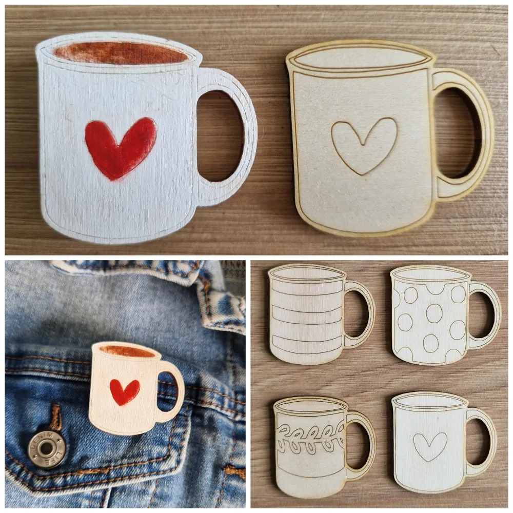 Malý překližkový výřez v podobě hrnku se sdrdíčkem.
