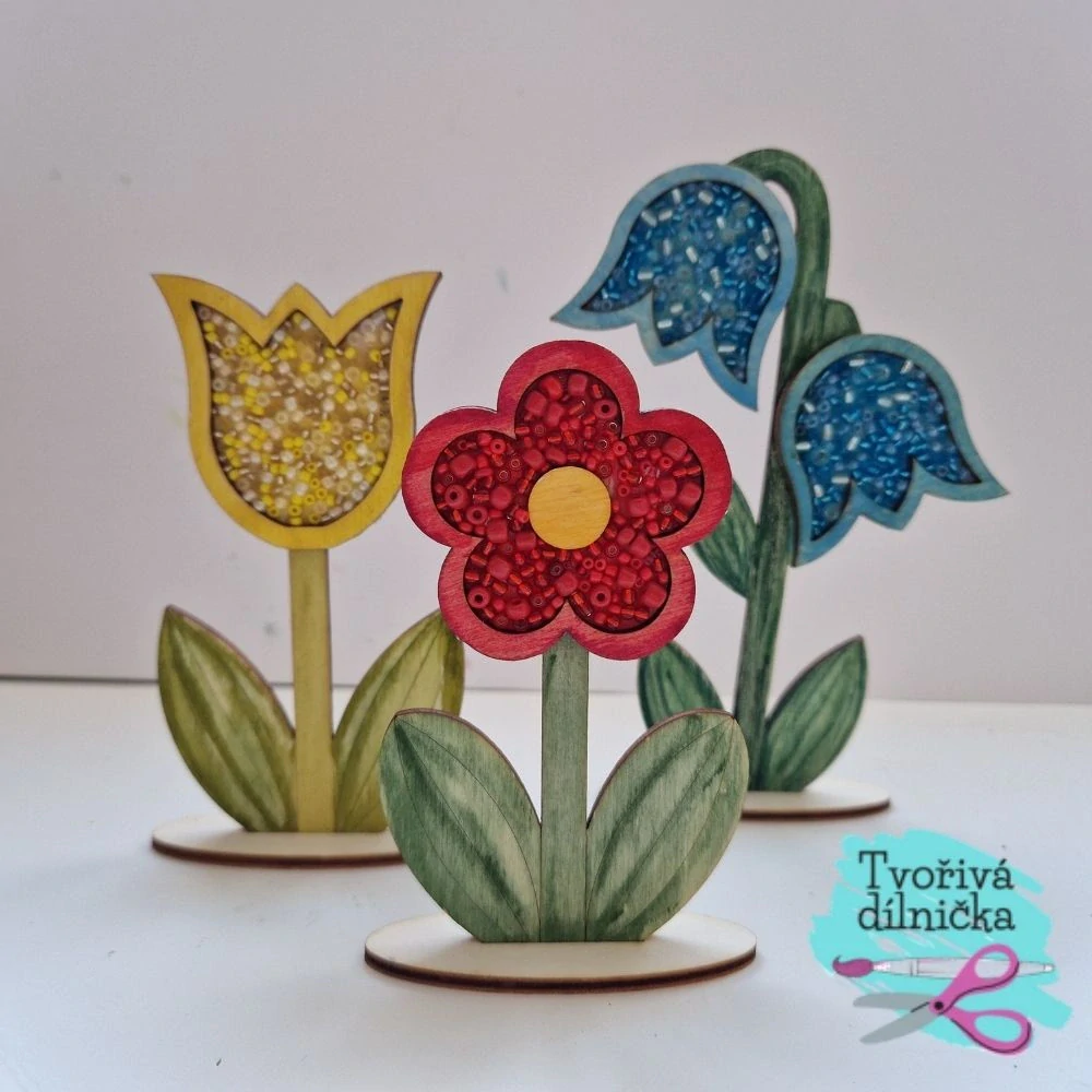 - Květiny z překližky k dotvoření se stojánkem – tvoření pro děti, dárek pro maminku