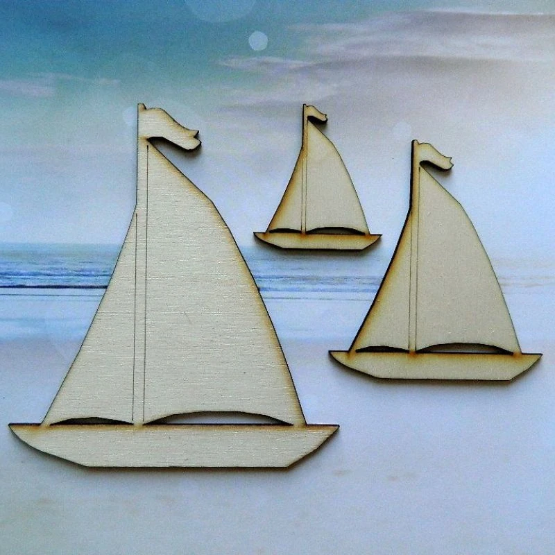 Výřez z topolové překližky o síle 3 mm v podobě plachetnice.
