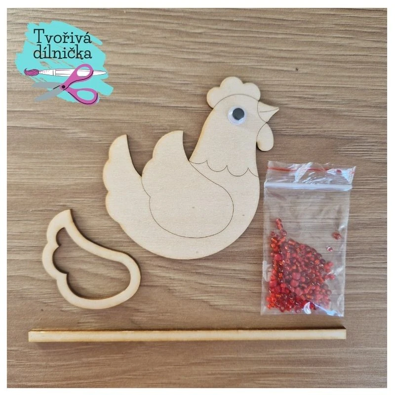 ✔️překližkovou slepičku a obrys křidélka také z překližky o síle 3 mm