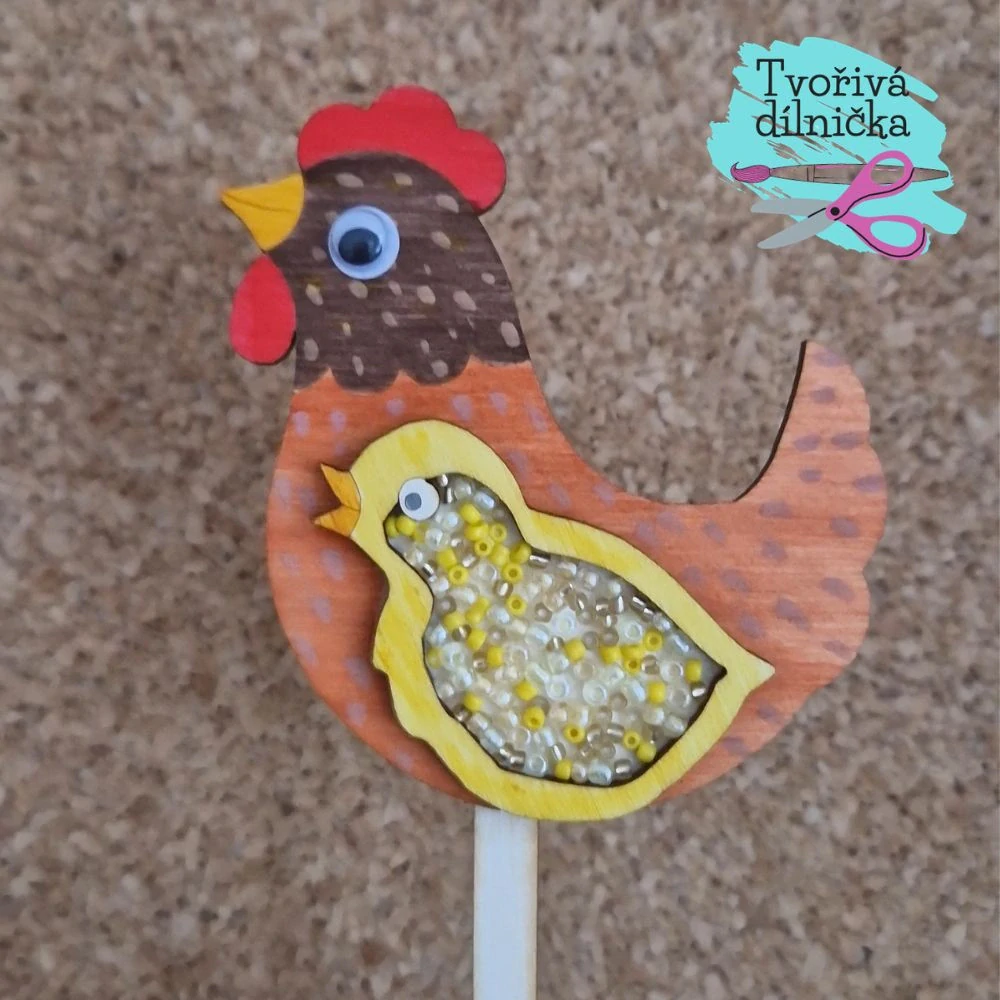 - Skládačka slepička s korálkovým kuřátkem